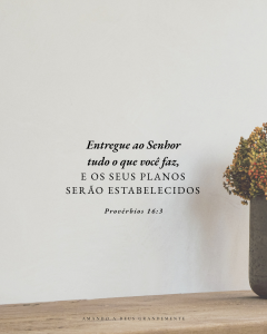 O autor de Provérbios 16 nos diz para entregarmos nossos planos ao Senhor. Ao fazermos isso, Deus não é obrigado a fazer o que queremos. Em vez disso, estamos entregando nossos dias e nosso tempo a Deus de bom grado, sabendo que onde Ele nos guiar é o melhor lugar para estarmos.